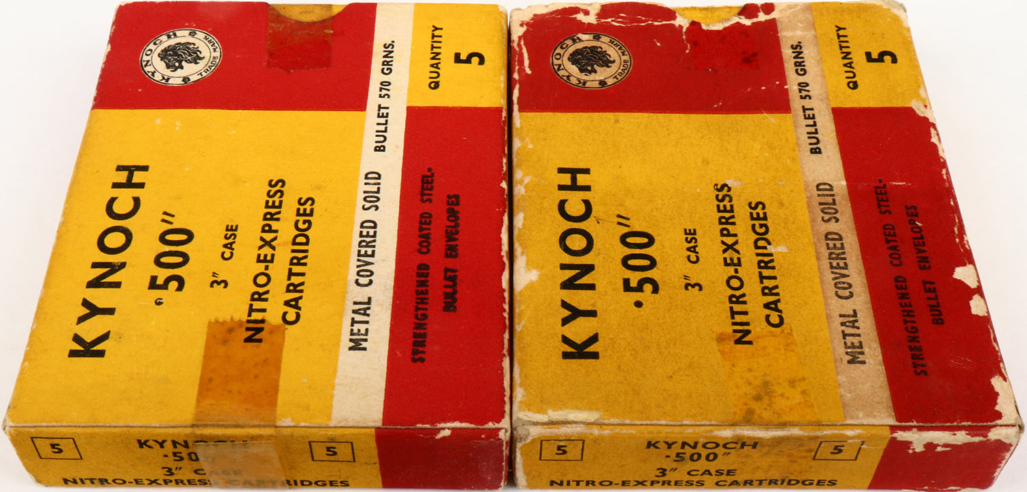 Kynoch, Lot of (2), .500 Nitro-Express, 3'' Case, Boxes are solid, ammo is excellent. (10922) Grade: Excellent + - Value: 20 to 80