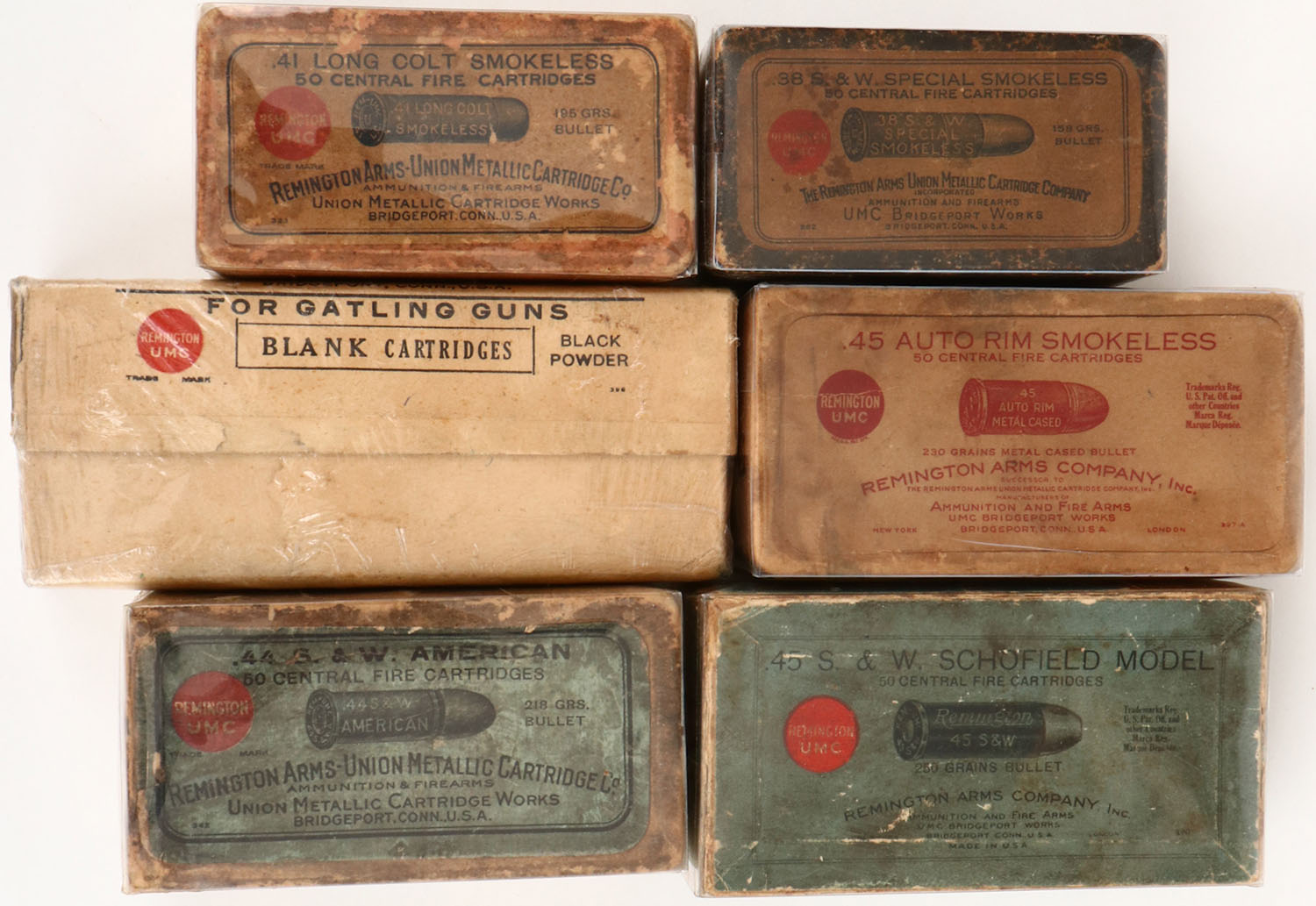 Mixed Mfg., Lot of (6) PARTIAL ammo boxes, all boxes appear excellent. Grade: Excellent - Value: 6 to 100