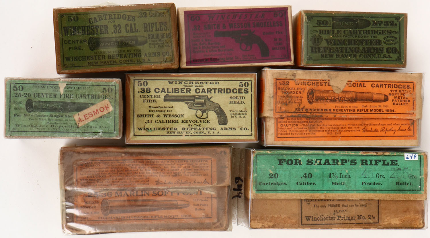 Mixed Mfg., Lot of (8) EMPTY ammo boxes, all boxes appear excellent. Grade: Excellent - Value: 2 to 100