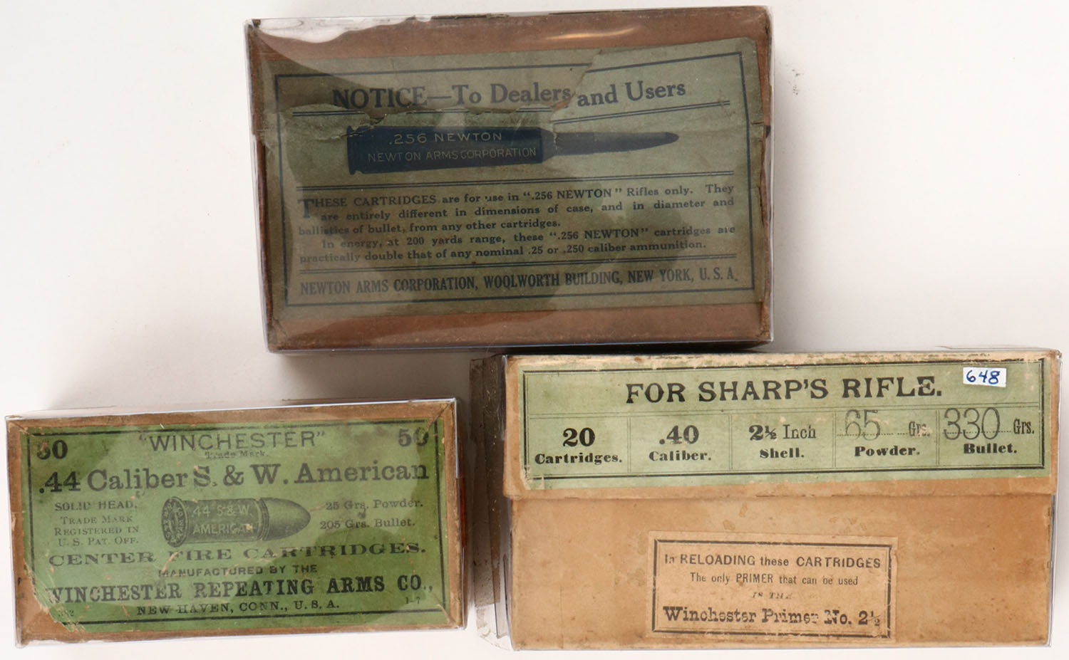 Mixed Mfg., Lot of (3) EMPTY ammo boxes, all boxes appear excellent. Grade: Excellent - Value: 2 to 100
