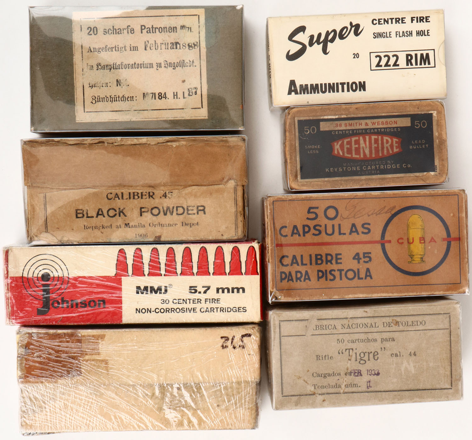 Mixed Mfg., Lot of (8) EMPTY ammo boxes, all boxes appear excellent. Grade: Excellent - Value: 2 to 100