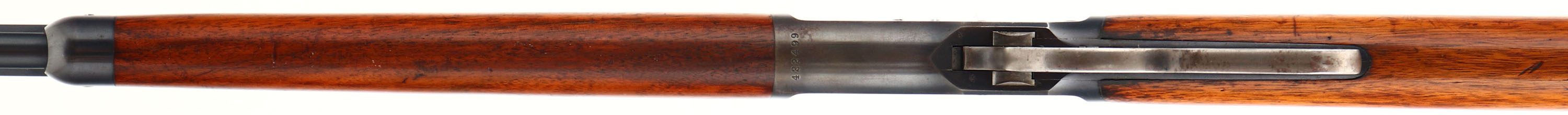 EXCELLENT Winchester, Model 1892, marked 32 WCF, MFG: 1908, SN: 422499, Lever Action Rifle, 24 1/4'' Octagon barrel, Full mag. The original straight grip wood stocks are excellent & solid, with the majority of factory finish remaining, Minor handling dings, scratches & blemishes. Metal displays 95% coverage of original blue on barrel & mag, 85% on receiver, with loss at natural carry points on belly of receiver. Some remains of case-colors on lever & hammer. Crisp barrel lettering & markings. Bore is excellent, but with a couple of spots of roughness. The rifle is fitted with an upgraded sight package of a Lyman flip-up tang sight, a folding leaf adjustable rear & an Ivory bead Lyman front sights. Stock carries a crescent metal buttplate. Special order double set triggers. Tight smooth action. An excellent, all original, & highly collectible special order 1892.* FFL or C&R Req. - Value: 4500 to 6500