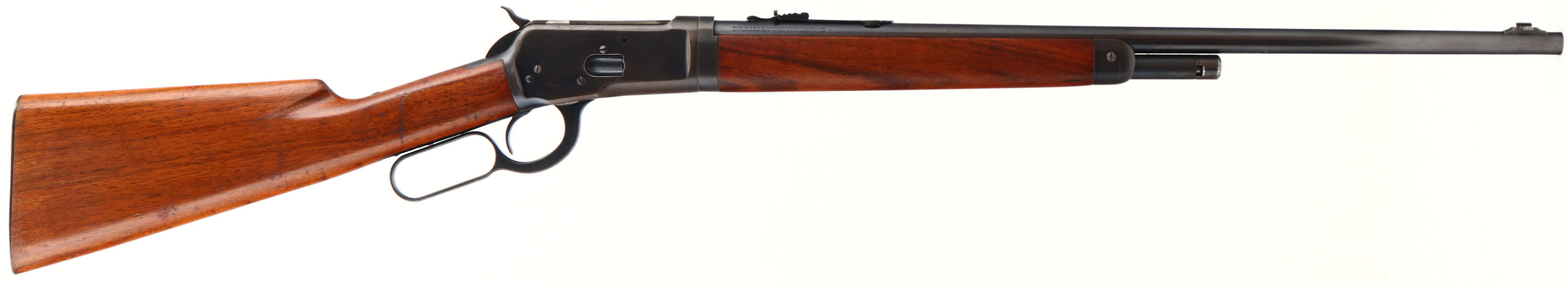RARE Winchester, Model 53 TAKE-DOWN, CAL: 44 WCF, MFG: 1924, SN: 362, Lever Action Rifle, 22'' Tapered round barrel. Half mag. In 1924, Winchester introduced the Model 53 lever-action rifle as a more modern version of the model 1892. Production lasted just 8 yrs until 1932, with very limited production of approximately 25,000. This rifle is a 1st YEAR PRODUCTION, early 3 digit SN. The original straight grip wood stocks are excellent, with minor surface scrapes, contusions & scratches. There is some flaking of the finish on the buttstock along the edge of the buttplate & thinning of finish on the forend. The metal blue finish on the barrel rates 95%, with small scrapes at the area of the takedown lever. The receiver blue rates 75%, with most thinning wear at the handling points of the belly, which is toning to a light brown/gun metal grey patina. Bore is excellent & bright, with proud rifling. The barrel holds a flat top adjustable rear sight & low profile front sight. Buttstock carries a grooved metal buttplate. A very nice example of a first year, take-down 53 in the very desirable 44 WCF.* FFL or C&R Req. - Value: 6000 to 9000