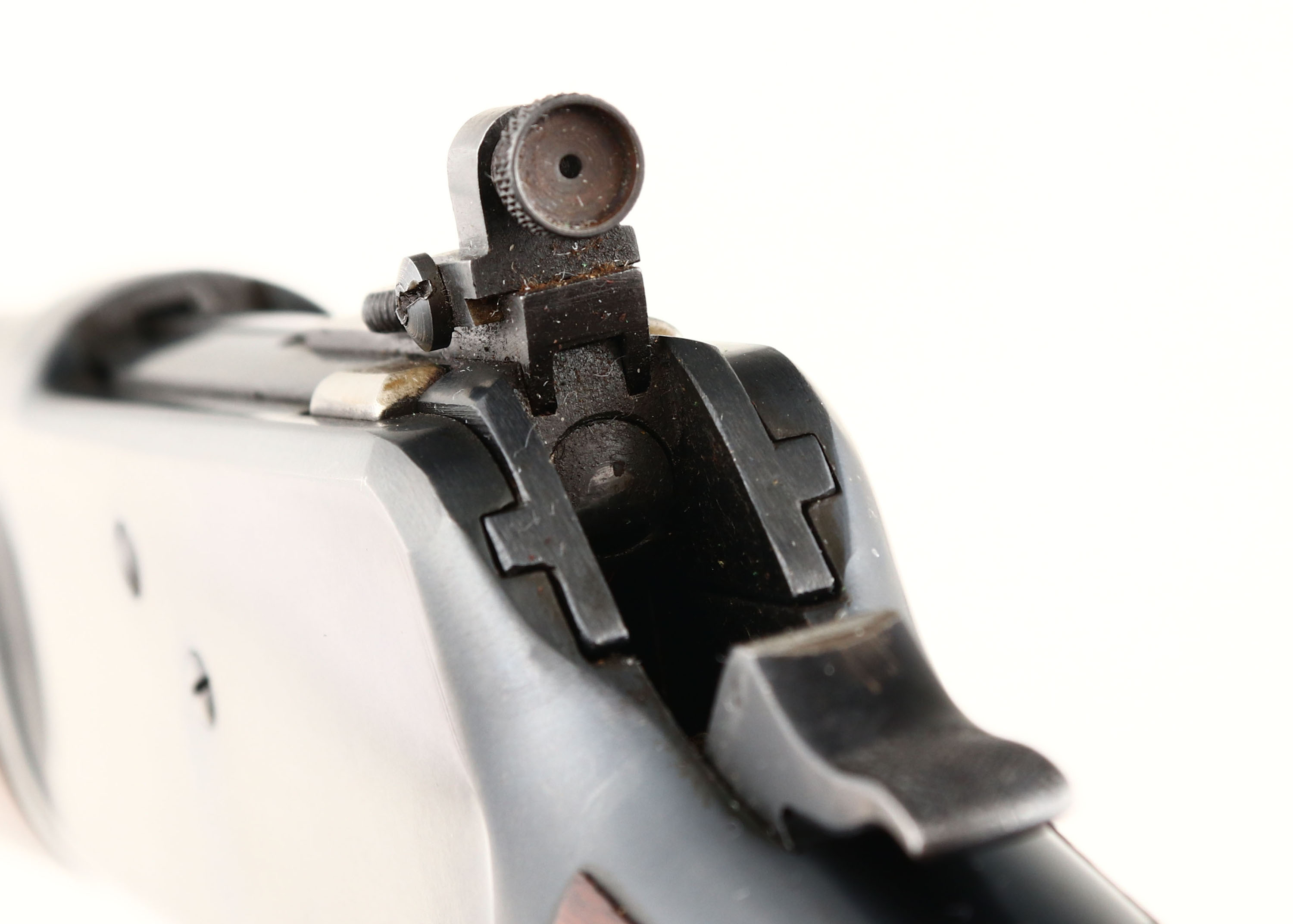 RARE & EXCELLENT Winchester, Model 65, marked 218 BEE, MFG: 1941, SN: 1007321, Lever Action Rifle, 24'' Round barrel, mag holds 7 rounds, This is one of the rarest & fewest made Winchester models of all models produced, with only 5,704 total rifles. The rifle was evolved from the model 58 & production started 1933 & ending in 1947, with the 218 Bee caliber added mid production in 1939. While .25-20 caliber rifles are the rarest, 218 Bee examples are in highest demand amongst collectors & command premium values. The original wood stocks on this example are excellent & solid, displaying nearly all the original finish with few tiny handling marks. The original metal blue finish on the barrel rates 98%, 95% on the receiver, with most wear loss on the belly of the receiver. The rifle carries the rare factory bolt receiver sight, with blank filled rear dovetail & hooded front sight, The factory checkered metal widow's peak buttplate retains 95% of the original blue. Excellent bore. A superb, all original condition, rare model 65 in the most desirable caliber. Definitely a collector's quality rifle.* FFL or C&R Req. - Value: 7500 to 9500