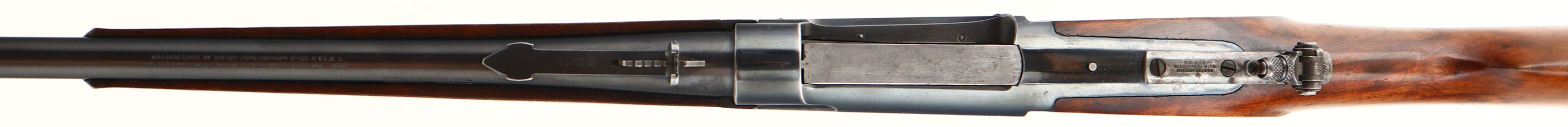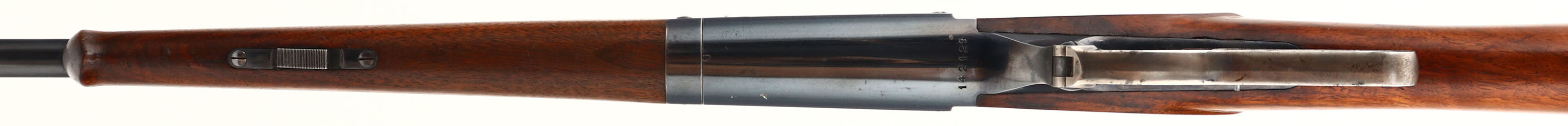 Savage, Model 1899, CAL: 22 H.P, MFG: 1913, SN: 142129, Lever Action Rifle, 20'' barrel. The original straight grip wood stock & forend are very good & solid. There are two tightly repaired hairline cracks emanating from the toe & the finish on the stock was nicely restored & blended to match the original finish. There is some thinning of the finish, along with minor contusions & scrapes to the finish. The metal blue finish rates 85% overall. The lever still displayed case-coloring. Bore is excellent, with strong rifling. The receiver holds a Marbles flip-up tang mounted peep sight. The barrel holds a Savage standard adjustable rear sight & block elevated blade front sight. Round counter on left side of receiver. Stock carries a Savage grooved metal buttplate. A nice take-down 1899. FFL or C&R Req. - Value: 800 to 1500