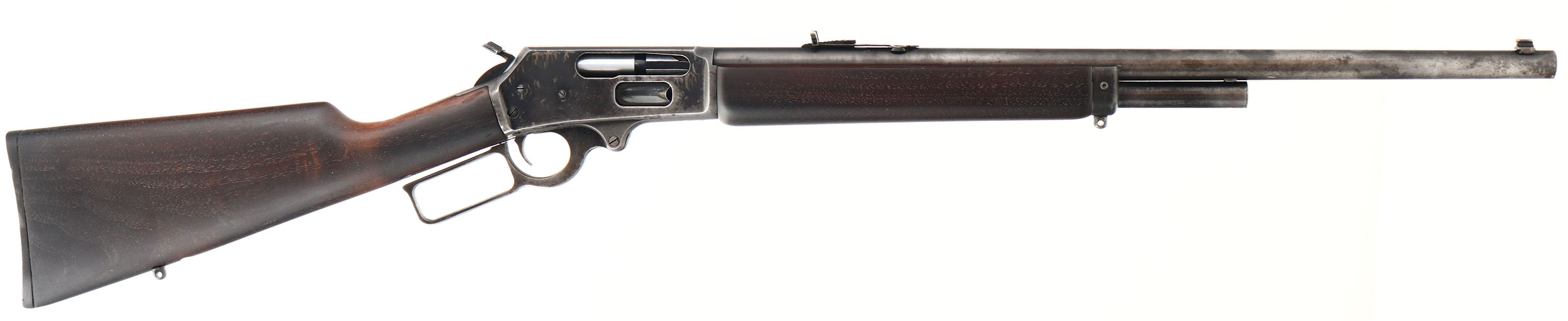 Marlin, Model 1895, CAL: 45-70, MFG: 1976, SN: 24072682, Lever Action Rifle, 21 7/8'' barrel. The original straight grip wood stocks are very good & solid, despite the wood being very dark & most of the original finish being worn or lightly sanded.. The stocks displaying contusions & dings. The metal blue finish has worn to a mix of gun metal gray, with maybe 20% remaining blue. Bore is excellent & bright. The receiver is factory tapped for scope mounts. The barrel holds an adjustable rear sight & blade front sight. Buttstock carries a Marlin checkered plastic buttplate, with a small chip at the toe. The stock has ''Bullseye'' trademark in belly of the stock & carries sling studs. FFL Req. - Value: 400 to 800