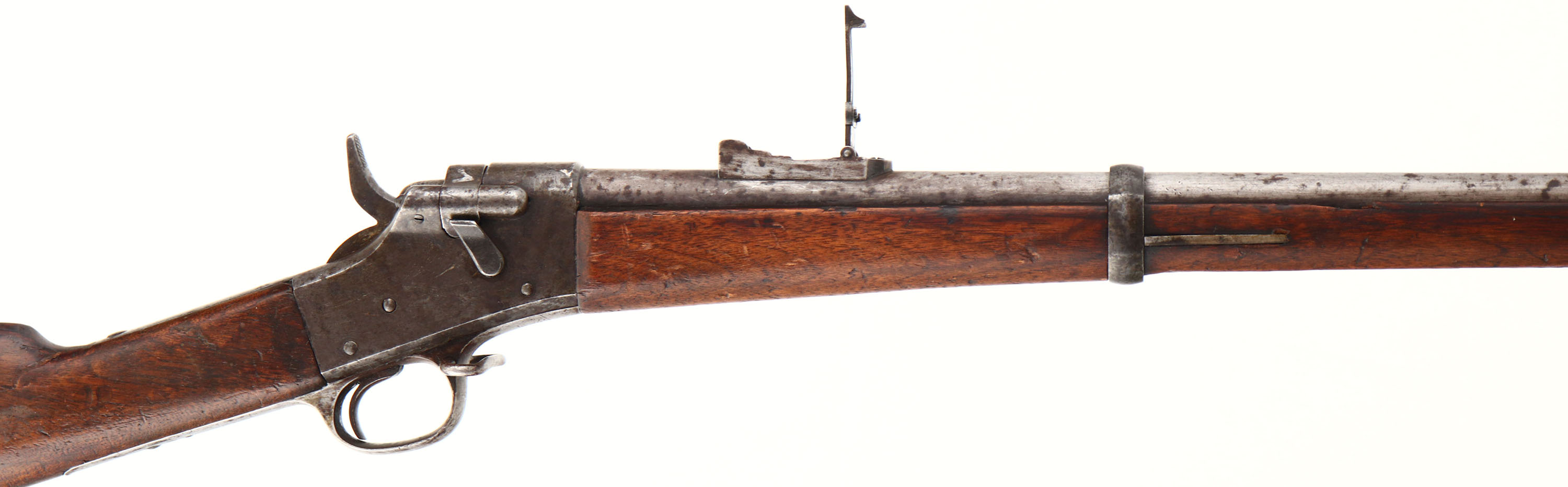 DESIRABLE! Whitney Phoenix Military Musket, Freund Marked, CAL: Appx. 50, MFG: 1870's to 80's, S/N: 3050, Single Shot Breech Load, 28 1/2'' barrel, marked ''Freund & Bro''. This Freund rifle has an unusual hinged breech, or swing gate, which also activates the ejector when fully opened. Frank & George Freund were two of the finer gunsmiths of the Old West, but were often overlooked in history, due to the fact that they usually concentrated on making improvements to existing rifles, rather than manufacturing their own complete firearms. Frank was the first one to emigrate to the U.S. in 1857, originally working for E. Remington & Sons & continued to work for them until the Civil War, when he enlisted in the Union Army. George joined his brother in 1866 as a gunsmith. In the late 1860's, the Freund Brothers moved out West, fixing firearms along the way for frontiersmen & buffalo hunters. Eventually, finding themselves moving along with the railroad construction gangs. They established ''branches'' in 10 different rail cities & became well recognized for repairing & improving all sorts of frontier firearms. After the railway was completed, the Freund Brothers had to find a place to settle & by 1870 they had made their way to Cheyenne, WY where they set up a branch. They then headed south to Denver, CO, where they opened a shop. In 1875 they sold to J.P Lower & moved back to WY. Over the next 3 years, Frank received 3 patents on improvements to the Sharps 1874 model & he went on to fully covert about 300 Sharps rifles to his improvements. This is a rare example of a Freund marked rifle. The original straight wrist wood stock is very good & solid, with added protective oils over the original finish. There are several small chips or splinter of wood missing along the upper edges of the forend, along with numerous other small contusions, scratches & scrapes. The metal finish has worn gun metal gray, with spotty areas of brown patina. The breech block is marked with S/N, top of barrel is marked, ''FREUND & BRO''. Bore is good, dark, with pitting amongst proud rifling. Simple blade front sight, tangent aperture & V-notch rear sight, marked 1 to 4 on side. Military metal buttplate, with brown patina. Sling loops. A rare western frontier rifle. Antique, No FFL Req. - Value: 2000 to 3500