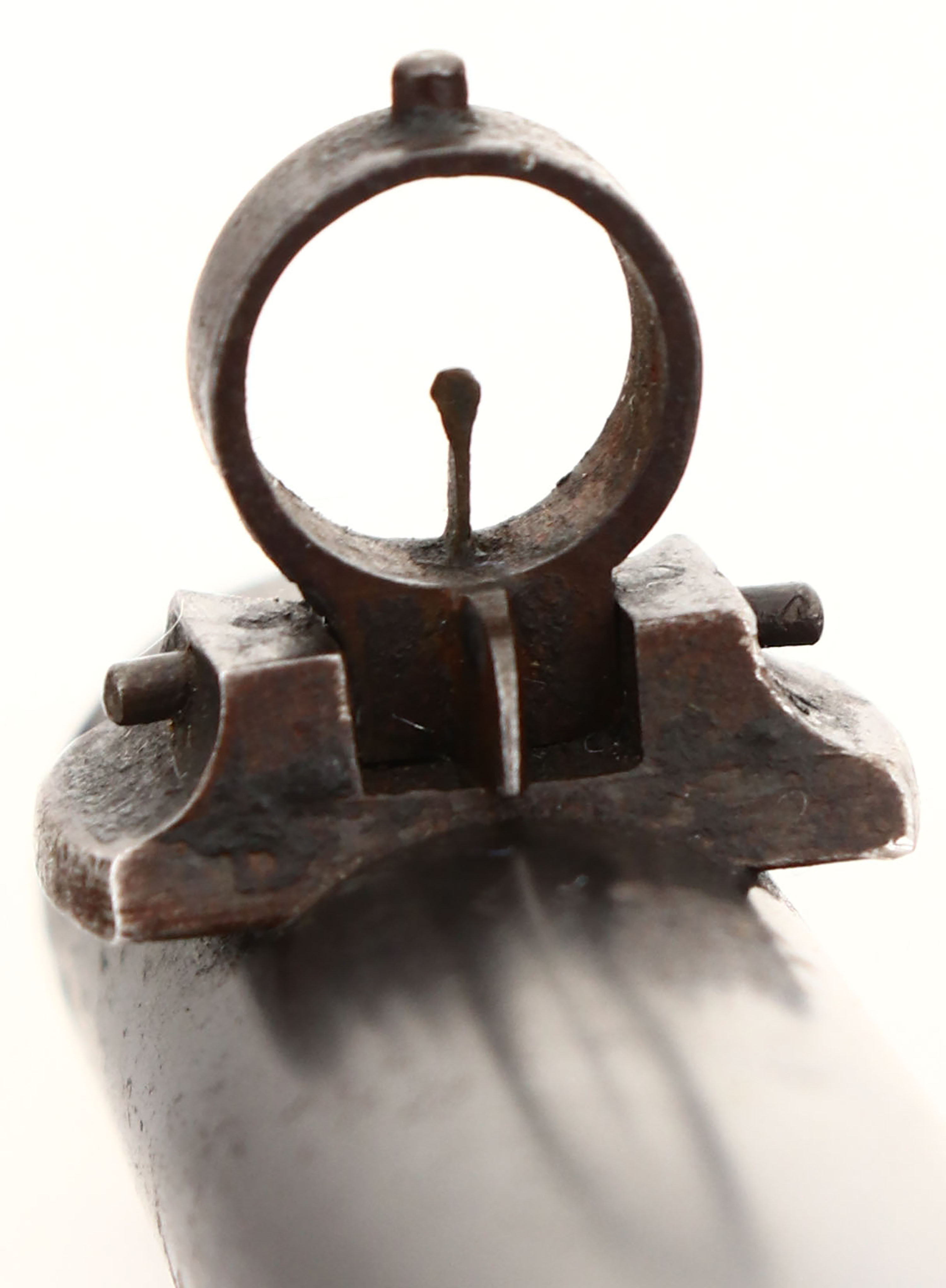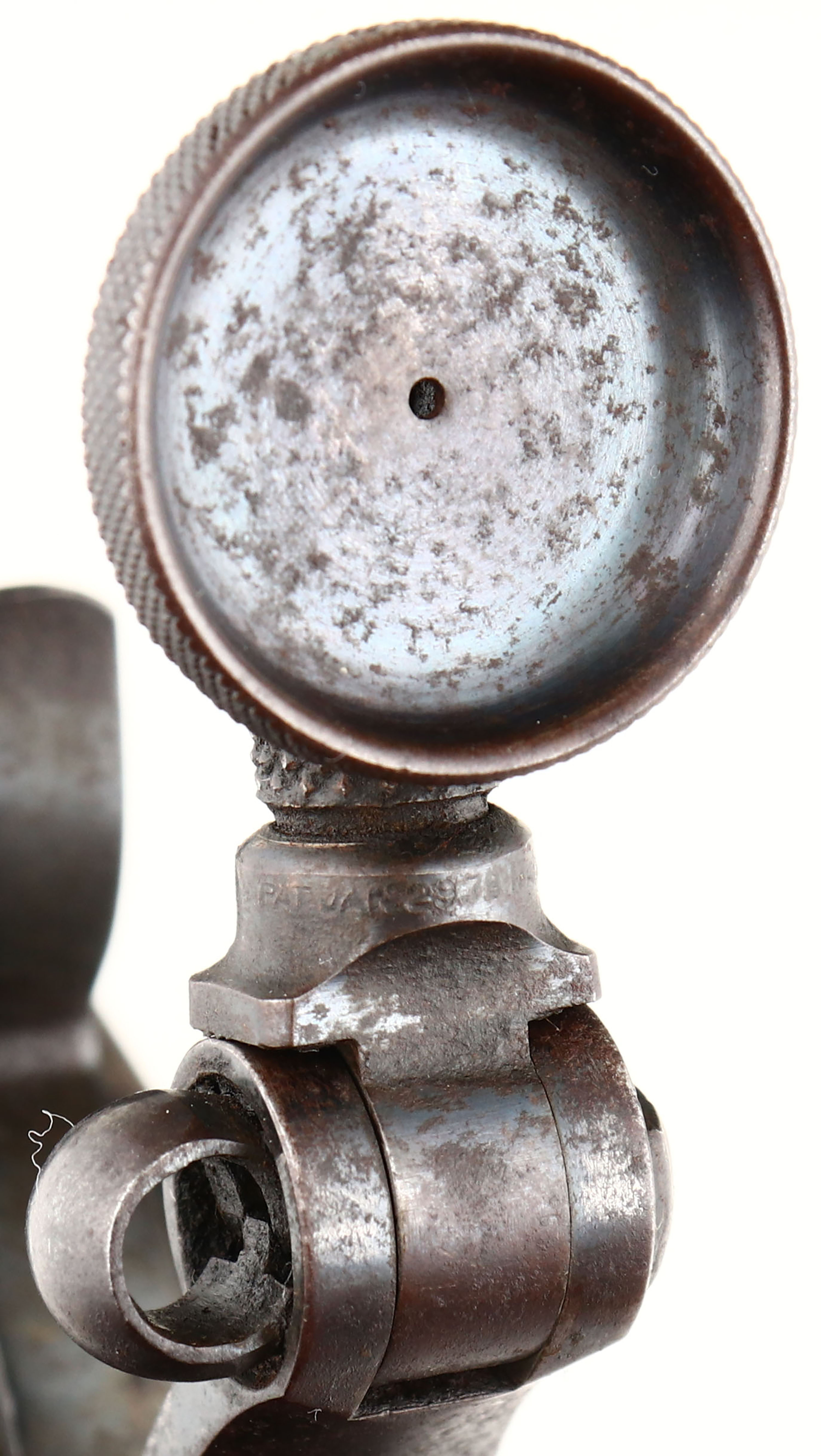 SCARCE! Remington, No. 7, CAL: 22 S, MFG: 1903-10, SN: 300086, Single Shot Rolling Block Rifle, 26 3/8'' half octagon/half round tapered barrel. Manufactured on Remington Model 1871 SS pistol action frames. This was Remington's last rolling block rifle, with approximately, just 350 No. 7 rifles manufactured in all variations. Chambered in .25-10 Stevens, .32 & the .22 short or long rifle rimfire cartridges, the short has become most popular amongst collectors. The original finely hand checkered & capped pistol grip wood stocks, with ebony forend inlay, are excellent, displaying the majority of the original finish, & very minor contusions, scratches & scrapes. The end & inside of the forend are marked with ''86'' as matching partial of the SN. The barrel is also stamped with the same ''86'' under the forend & 22S caliber marking in front of forend. The original metal blue finish on the barrel rates 95%, with some light speckling. The receiver has toned to a mix of brown patina & metal gray in areas of wear. Bore is very good, some light spotting amongst strong remaining rifling. The barrel carries a flip-up globe front globe sight & the rear of the receiver carries a special flip-up Lyman tang sight, with large aperture disc. Buttstock carries the original checkered buttplate. Checkered trigger. An original & excellent example of a very rare No. 7 Rolling Block Rifle. FFL or C&R Req. - Value: 4000 to 8000