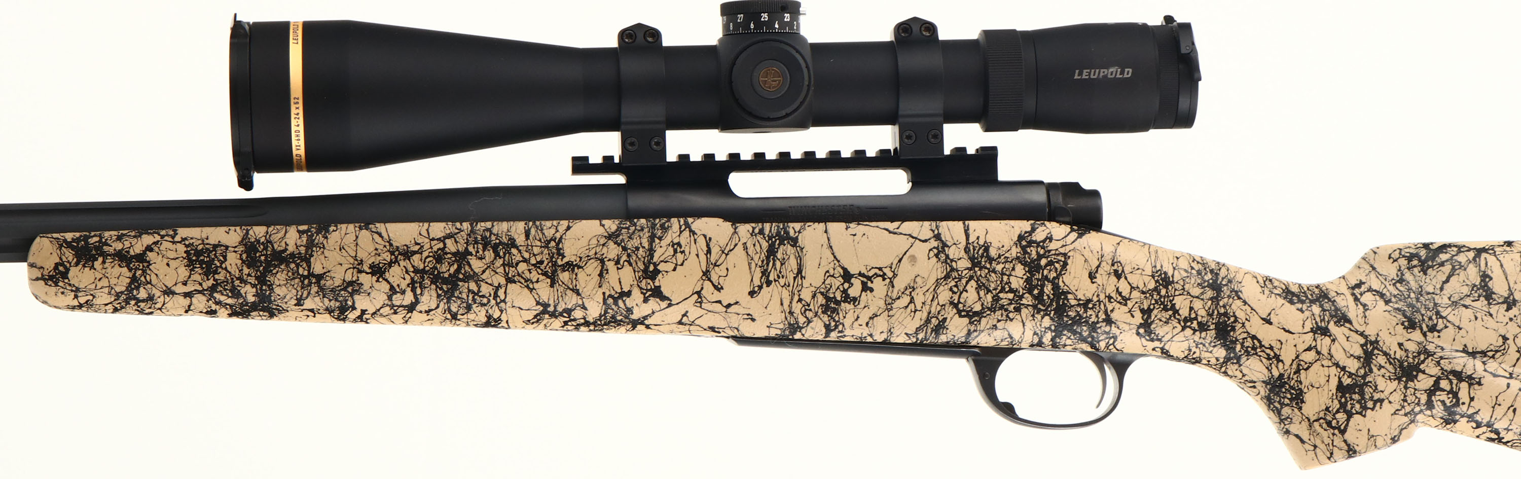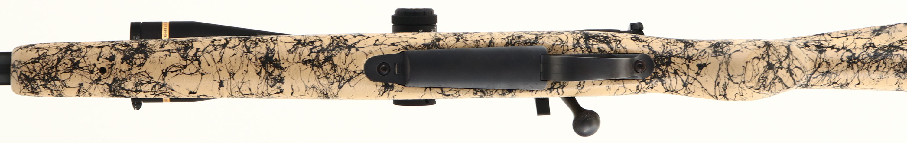 CUSTOM, Winchester, Model 70, CAL: 7mm WSM, MFG: Modern, SN: G2424314, Bolt Action Rifle, 27'' barrel. The custom, cheeked & flat pistol grip synthetic stock is excellent, It carries a wonderful desert tan & black accent finish, with a Jackson Pollock nod, which is also excellent. The custom fluted barrel has a matte, dark gray finish, which is excellent. The matte black finish on the receiver rates 95% overall, with minor surface scuffs. Bore is excellent, with sharp rifling. The picatinny rail on the receiver carries a Leupold VX-6HD 4-24x52 scope & no open sight provisions on barrel. Stock carries a solid black rubber recoil pad. Single sling stud in stock, open hole in forend. A fully customized & nicely equipped Winchester action rifle. FFL Req. - Value: 1000 to 2000