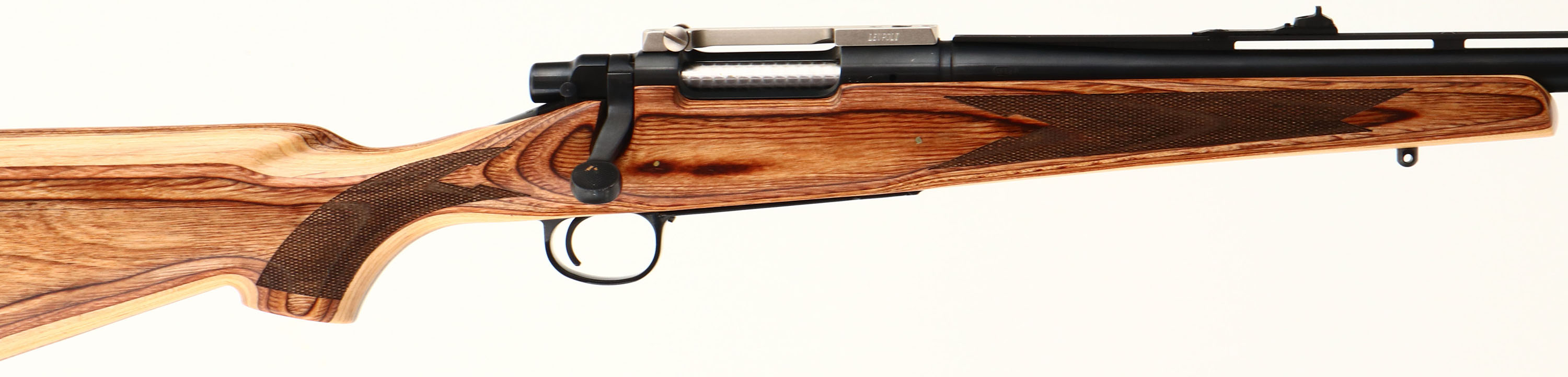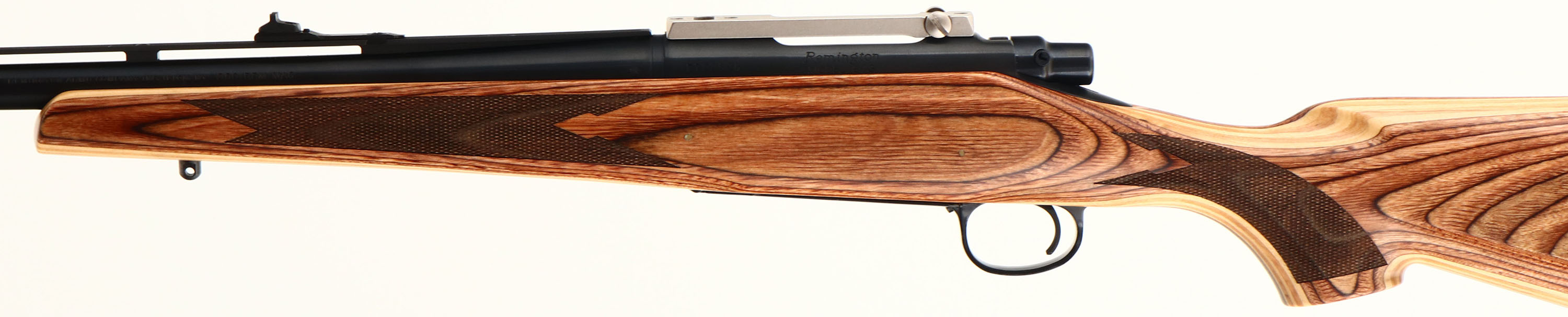 Remington, Model 673, Guide Rifle CAL: 350 Rem Mag, MFG: 2003-06, SN: 7792505, Bolt Action Rifle, 22'' barrel. The original checkered & flat pistol grip laminated wood stock, with beaded cheek, is excellent, displaying minor handling marks to the original finish. The metal blue finish on the barrel & receiver rates 98% overall. Bore is excellent. The barrel holds a ventilated rib, with factory sights. The receiver holds a stainless steel Leupold scope mount. Buttstock carries a solid brown rubber recoil pad. Dual sling studs. FFL Req. - Value: 500 to 900