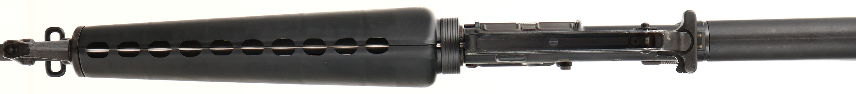 Colt, AR-15 SP1, CAL: .223, MFG: 1982, SN: SP148372, Semi Auto Rifle, 21'' barrel. The SP1 was Colts first commercial semi-auto version of the Military M-16, with distinctive triangular handguards. The synthetic fixed buttstock & forend are very good, displaying minor handling marks & scuffs. The metal surfaces have sprayed on black finish, with 70% coverage. The metal displays several areas of cleaned pitting, several nick & abrasions under the refinish, along with additional wear after the refinish. Bore is excellent & bright, with clean rifling. Rifle carries the A1 sights. Carries the pre-ban flash hider & bayonet lug. Buttstock carries a black plastic buttplate, with integral checkered metal trap-door for cleaning kit. An early Pre-ban Colt AR-15. FFL Req. - Value: 1000 to 2000