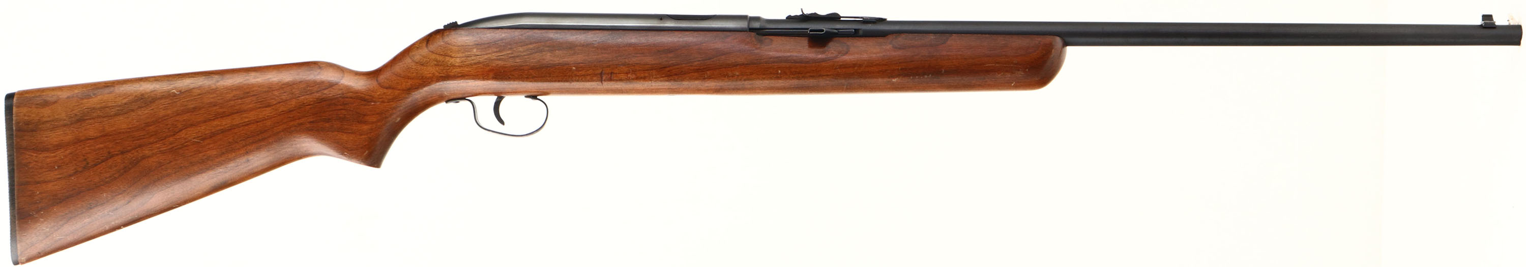 Winchester, Model 55, CAL: .22 S,L,LR, MFG: 1957-61, SN: None, Marketing as the Self Loading Single Shot Auto Ejecting Rifle, 21 3/4'' round barrel. The original flat pistol grip wood stock is excellent, displaying several minor finish level scuff & tiny contusions the original finish. The original metal blue finish is 97%, with minor blemishes. Bore is excellent. The barrel holds an adjustable rear sight & blade front sight. Stock carries a Winchester checkered buttplate. Only 45,000 produced. A very nice & fairly rare Winchester .22. FFL or C&R Req. - Value: 300 to 600