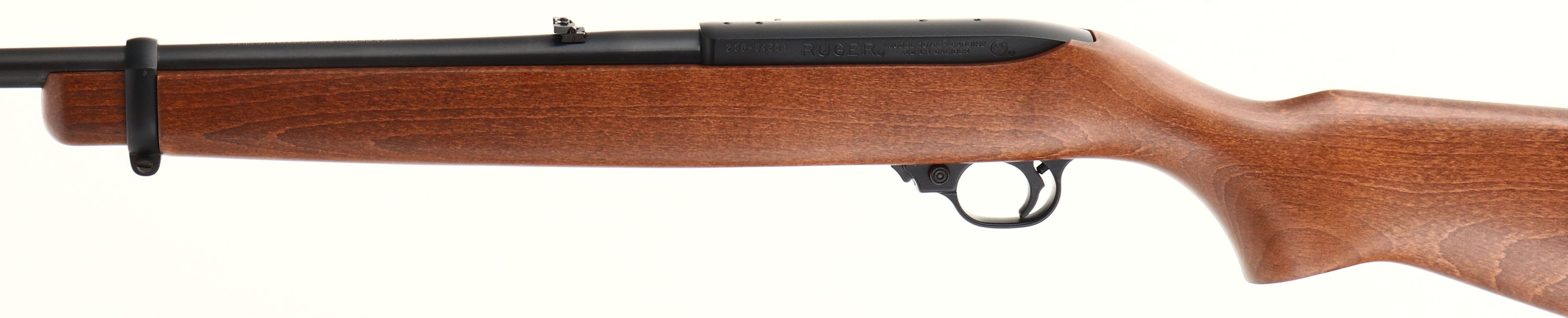 BOXED, Ruger, Model 10/22 Carbine 40th Anniversary Edition, CAL: 22LR, MFG: 2004, SN: 256-54268, Semi Auto Rifle, 18 1/2'' barrel. The flat pistol grip wood stock & finish is excellent & minty. The right side of the stock displays an inlaid silver medallion, labeled ''Ruger (Logo) 10/22 Carbine 40th Anniversary''. The metal blue finish rates 99%+. Bore is excellent & bright, with crisp rifling. The barrel holds a standard folding leaf rear sight & blade front sight. Buttstock carries a smooth metal buttplate Comes in original box, with 40th Annv. clear magazine, owners manual & lock. FFL Req. - Value: 300 to 600