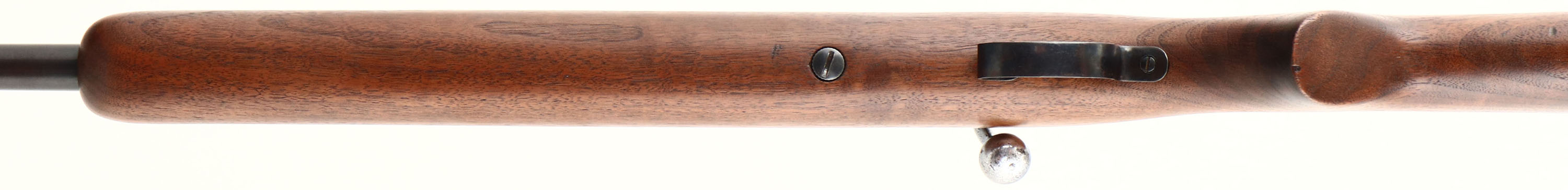 RARE Winchester, Model 67A SMOOTH BORE, .22 L & LR SMOOTH BORE Cal., MFG. 1937-63, SN: None, Take-down Bolt Action Rifle, 27'' Tapered round barrel, Sporting model, Marked SMOOTH BORE on left side of barrel. The factory flat pistol grip wood stock is excellent, having been lightly sanded & professionally refinished. The forend tip has a tightly repaired 1'' grain crack. The finish is excellent, with very few tiny handling marks & an overall excellent appearance. The metal finish is 90%, toning gray/blue as it thins. Bore is excellent. Mounted with original factory sights. Winchester plastic buttplate. A rare smooth bore example, with an excellent appearance. FFL or C&R Req. - Value: 500 to 1000