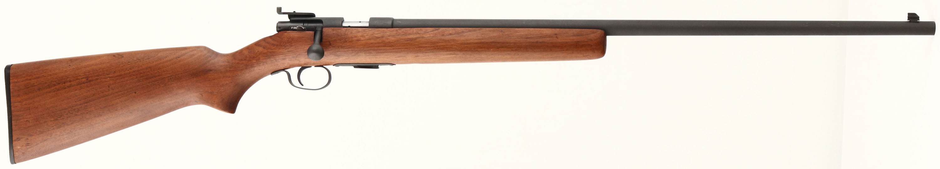 Winchester, Model 69-A, CAL: 22 SHORT, LONG & LONG RIFLE, MFG: 1935-63, SN: N/A, Bolt Action Rifle, 25'' barrel. The original flat pistol grip wood stock is excellent & solid, having been lightly sanded & nicely refinished. There are several small scrapes, scratches & light contusions remaining. The wood has an overall excellent appearance. The metal has been refinished with a modern flat gray finish which is excellent. Bore is very good. The receiver holds a height adjustable dovetail sight, while the barrel holds an updated front blade sight. Buttstock carries a Winchester checkered black plastic buttplate, with a couple of small chips along the upper edge. Comes with a single shot dummy detachable mag. Excellent overall appearance. FFL or C&R Req. - Value: 200 to 400