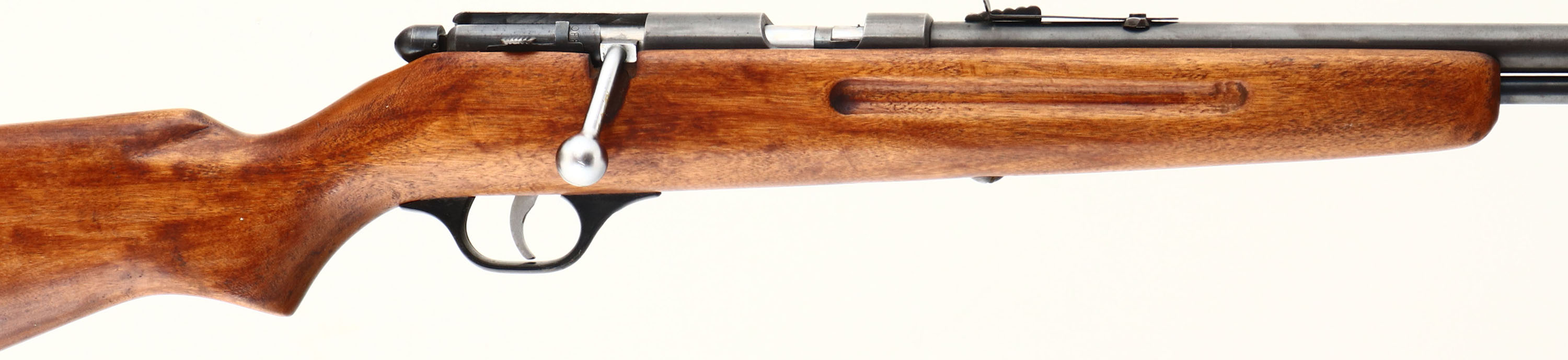 Marlin, Model 81, .22 S, L, LR Cal., MFG. 1937-39, SN: NONE, Bolt Action Rifle, 24'' Round tapered barrel, Full mag tube, The flat pistol grip wood stock, with finger grooved forend is very good & solid. The stock has been lightly sanded in areas & has an added layer of finish over the remains of the original finish. The finishes show thinning, along with small scrapes, contusions & scratches. Metal blue is 85% overall. Bore is excellent. Original buttplate. The barrel carries original rear & front sights. Trademark bullseye in stock. FFL or C&R Req. - Value: 150 to 250