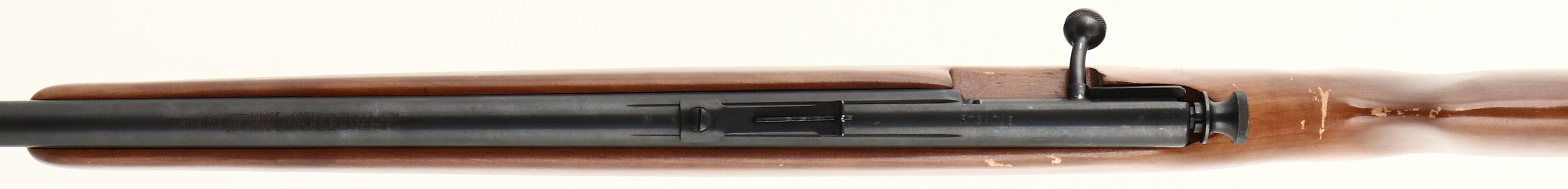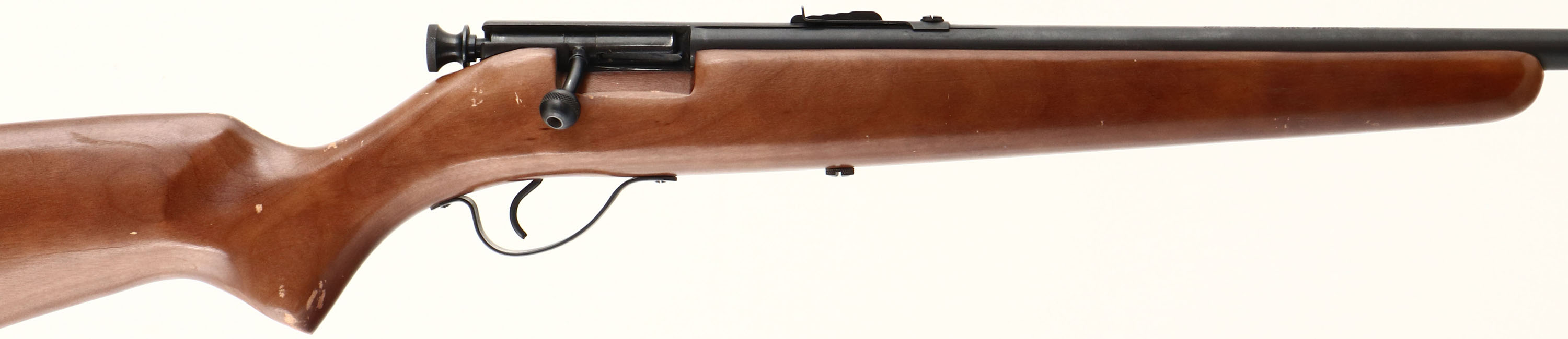 Savage, Model 521 Hiawatha, Series A, .22 S, L, LR Cal., MFG. 1960's-80's, SN: P739098, Bolt Action Rifle, 24'' Round tapered barrel, Full mag tube, The flat pistol grip wood stock is excellent, with the original finish. The finish shows small scrapes & a set of larger concussions/scratches at the lower right portion of the stock. Metal blue is 98% overall. Bore is excellent. Original buttplate. The barrel carries original rear & front sights. FFL Req. - Value: 150 to 300