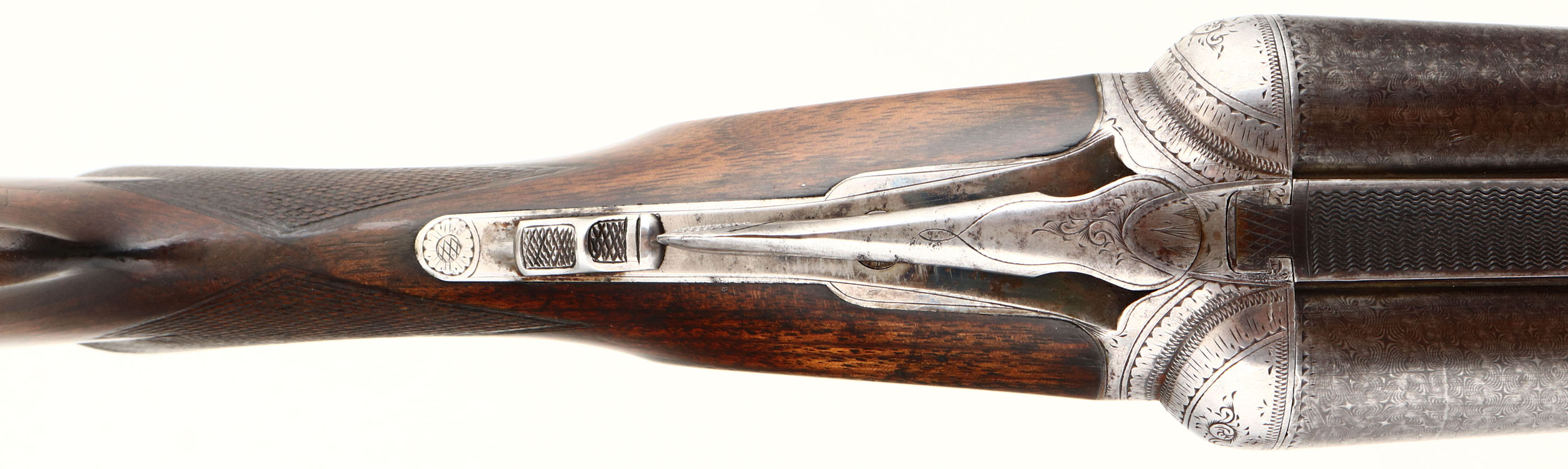 Parker Bros, Model GHE or Grade 2, CAL: 12GA, MFG: 1906, SN: 137620, Break Action SxS Shotgun, 26 7/8'' Damascus barrels, with ejectors. The deluxe checkered & capped pistol grip higher quality American walnut stocks are very good, having been cleaned & displaying an added layer of finish over the original finish. They have wonderful grain & have minor surface scrapes & small contusions. There is a blank initial shield in the belly. The forend has an engraved metal inlaid tip. The Damascus pattern on the barrels is still prominent, on the worn to mostly gun metal gray finish, with a thin layer of brown patina. The case-hardened receiver has worn & faded silver, with remnants of case-color in protected areas. The receiver displays bird game scenes left, right & bottom, with additional simple scroll work. The trigger guard, break lever & forend release lever also display simple scroll engraving. Bores are very good & bright, with a bit more wear within the left barrel. The solid matted rib holds a single front bead. Stock carries a checkered & embossed Parker dog's head buttplate. At the time, this model & grade was popular amongst buyers that wanted a gun with more adornment, fit & finish, & was willing to pay the higher price to have the nicer gun. The gun presents well & remains collectible in this condition.* FFL or C&R Req. - Value: 1000 to 2000