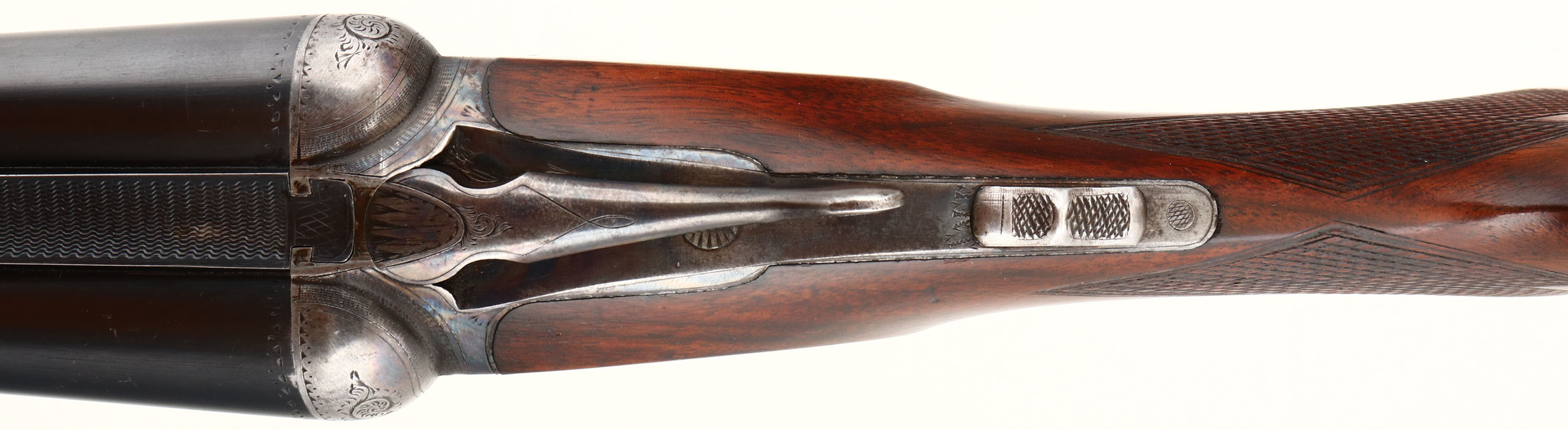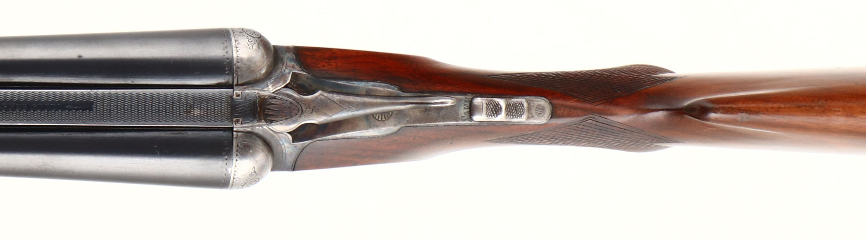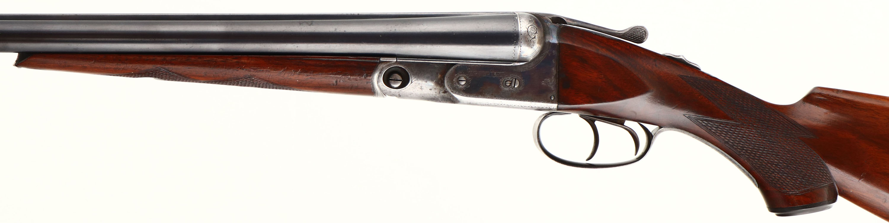 Parker Bros, Model PH or Grade 1, CAL: 16 GA, MFG: 1921, SN: 193388, Break Action SxS Shotgun, 28'' barrels. The original checkered capped pistol grip wood stocks are excellent, displaying minor scratches, scrapes & contusions. The stock appears to carry the original finish, while the forend carries the same original finish, with added thin layer of finish. The metal blue finish on the barrels rates 85% overall, with a couple of small contusions to the bottom of the right barrel, mid barrel, & other minor blemishes. The case-hardened receiver, retains faded outlines of case-colors, with more colors remaining in protected areas. The receiver, trigger guard, break lever & forend metal components all display simple scroll work & ornamental border engravings. #1 stamped on barrel lug. Bores are very good & bright, with visible striations from honest use. The solid matted rib holds a single front bead. Stock carries an original checkered/ dog's head Parker buttplate. A very nice example that present well. FFL or C&R Req. - Value: 1000 to 2000