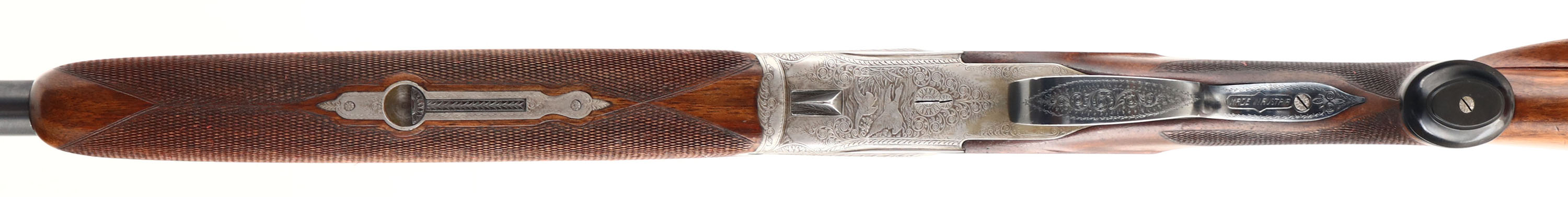 Franz Sodia, Ferlach, CAL: 12 GA, MFG: 1950's, SN: 2916, Break Action O/U Shotgun, 28 1/2'' barrels. The original, checkered, beaded cheek, & capped pistol grip wood stock & three piece forend are excellent, displaying minor contusions & surface scrapes to the finish. The metal blue finish on barrels rates 95% overall, with light scuffs & blemishes. The receiver is coin silver. The entirety of the receiver, trigger guard, break lever, forend metal components & screws are all beautifully & intricately hand engraved. The receiver displays multiple game scenes; on the left a pointer & two quail, on the right a fox & two woodcocks, on the bottom two mallards, as well as a variety of ornamental scroll work. Bores are excellent. The solid rib holds a single front bead. Buttstock carries a solid black rubber recoil pad. Sling loops present. Double triggers. A truly outstanding example of a high grade Austrian shotgun. FFL or C&R Req. - Value: 1500 to 2500