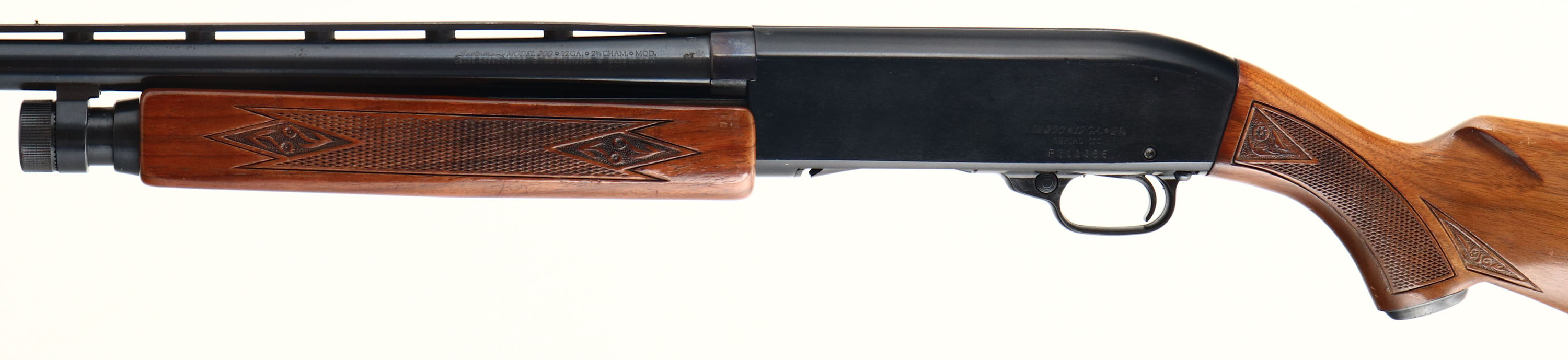 Ted Williams, Model 200, CAL: 12GA, MFG: 1964-81, SN: P311388, Pump Action Shotgun, 28'' barrel. The checkered & capped pistol grip stocks are very good, displaying minor contusions, scrapes & dings to the original finish. The metal blue finish on the barrel rates 98%, while the anodized metal finish on the receiver rates 97%, with minor blemishes. Bore is excellent, with light striations from use. The ventilated rib holds a small silver mid-rib bead & front bead. Buttstock carries a ventilated recoil pad. FFL Req. - Value: 200 to 400