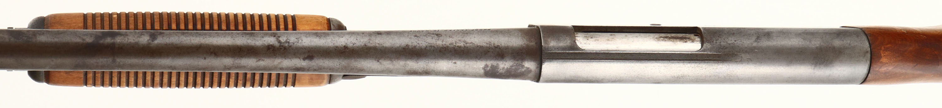 Springfield, Model 67H, CAL: 12 GA, MFG: 1967-89, SN: N/A, Pump Action Shotgun, 27 3/4'' barrel. The flat pistol grip wood stocks are good, with the stock having a wrap-around repaired crack on the top of the wrist. There are scrapes & dings to the original finish. The metal finish has worn to an uneven mix of metal gray & brown patina, with spotting & pitting throughout the metal surfaces. Bore is very good, with minor spotting near the muzzle. The barrel holds a single front bead. Buttstock carries a grooved plastic buttplate with a 1'' edge chip. FFL or C&R Req. - Value: 100 to 300