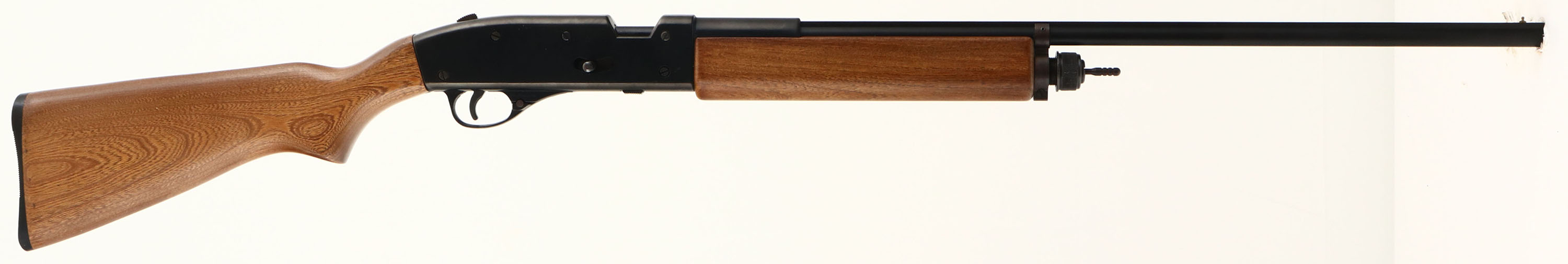 RARE!! Crosman Arms, Trap Master 1100, CAL: No.8 Shot/Crosman Co2 Shotshells, MFG: 1968-71, SN: 616069, Co2 Powered Shotgun, 28'' Ribbed barrel. The flat pistol grip wood stocks are excellent, displaying minor handling marks to the original finish. The metal black finish on the barrel & receiver is excellent, rating 99% overall, with a few minor blemishes or scuffs. Bore is mint. The barrel holds a single front bead. Stock carries a grooved plastic buttplate. This is a rarely seen full set. It comes complete with all parts for the Trap Bench assembly in original packaging, with parts having light storage wear. Comes with (25) yellow plastic break-away targets in original Crosman box, original Crosman Shotshell Reloading Kit, with shells, BB shot & plastic wads, oil new in the package, owners manual, assembly instructions, shotshell reloading instructions, & a couple other paper articles. A seldom seen set, especially with all the correct, original parts in very high original condition. A wonderful addition to a Crosman collection! Air shotgun. No FFL Req. - Value: 500 to 1000