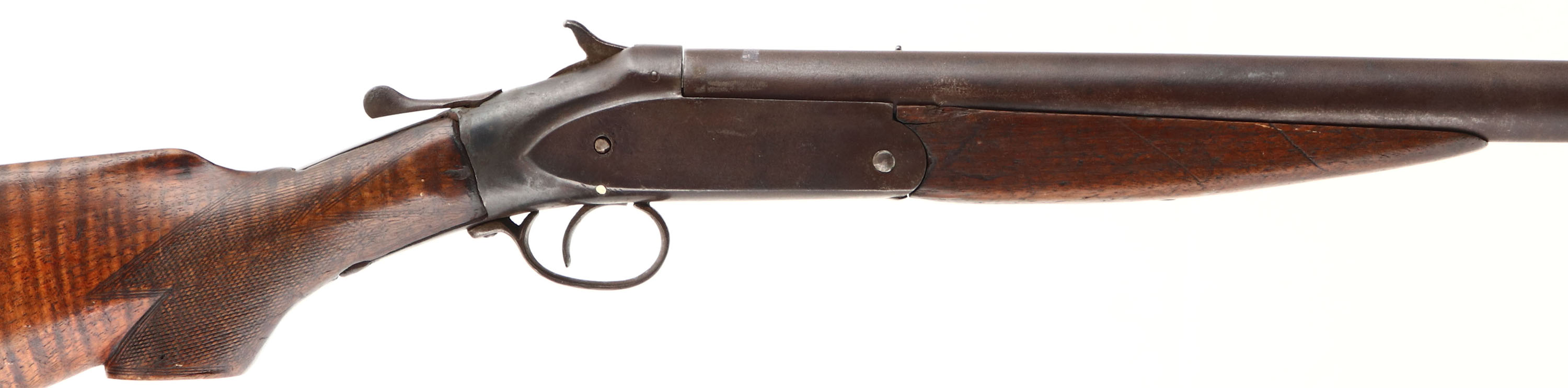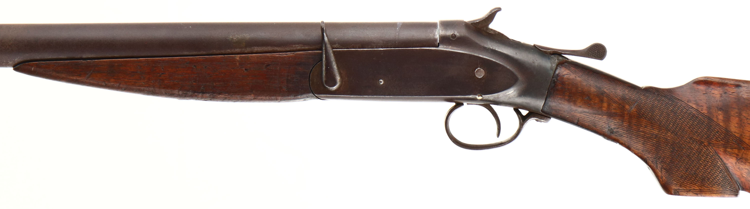 Sears Roebuck & Co, Model ''New Long Range Winner'', CAL: 12GA, MFG: 1920's, SN: 47220, Break Action Single Shot Shotgun, 32'' barrel. The checkered flat pistol grip wood stock & forend are fair & solid, displaying cracks, scratches & numerous nicks & dings. The metal finish has toned to an even brown patina on the barrel & receiver. Bore is fair, displaying pitting & spotting near the chamber & wear throughout. No buttplate. Trigger & hammer don't function, break lever swings freely, the barrel only stays closed if break lever is in correct position. FFL or C&R Req. - Value: 50 to 200