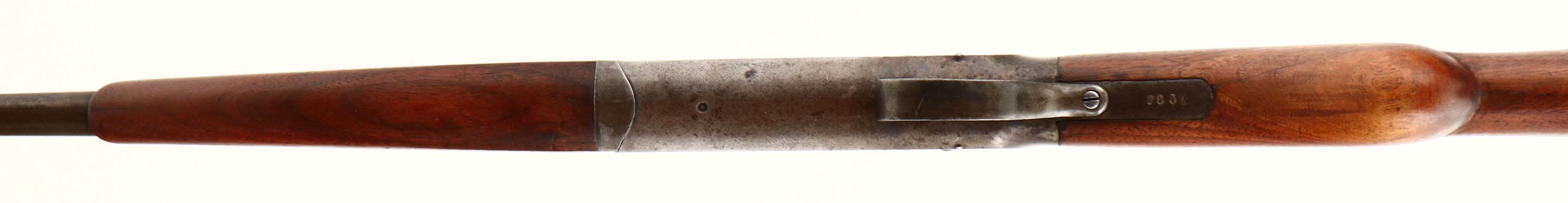 Iver Johnson, Model ''Champion'', CAL: .44 SHOT, MFG: 1911-15, SN: 7831, Break Action Single Shot Shotgun, 26'' barrel. The refinished round knob pistol grip wood stock appears very good & solid, despite a glued tight large repair at the wrist, along with other small contusions, scrapes & dings. The metal finish on the barrel has worn to gun metal gray & having a thin brown patina. The receiver is case-hardened, displaying remnants of case-coloring. Bore is good, with spotting & light pitting near the breech end. The barrel carries a single front bead. Buttstock carries a I.J. grooved black plastic buttplate. FFL or C&R Req. - Value: 100 to 300