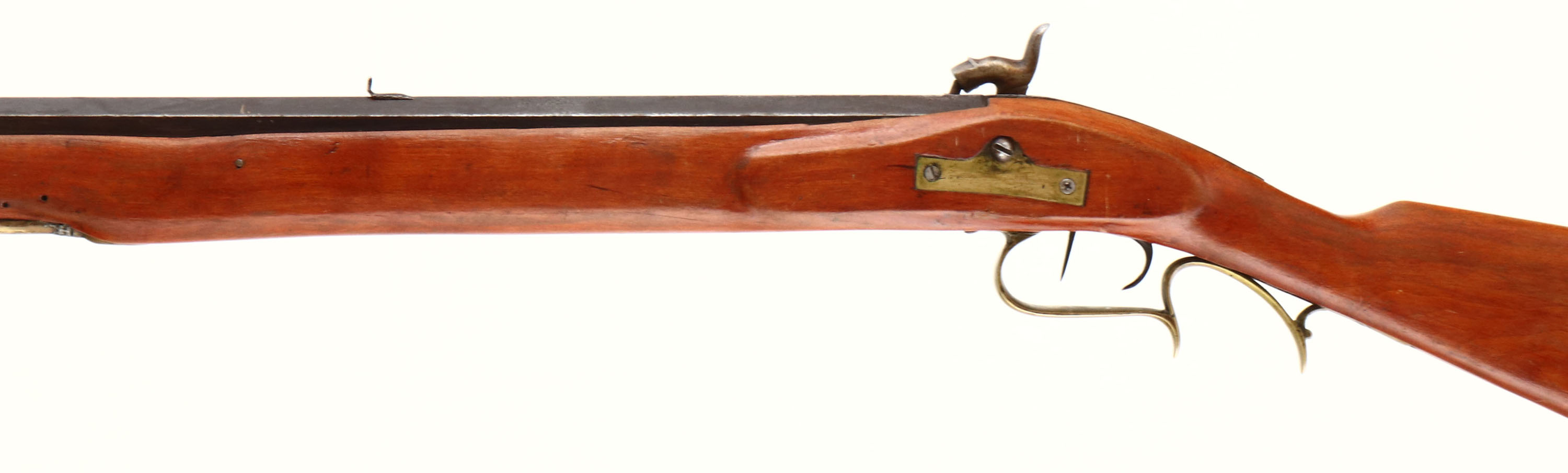 H.D. Ziegler. CAL: .34, MFG: N/A, S/N: N/A, Percussion Muzzleloader, 40 1/2'' octagon barrel. The refinished straight grip wood stock is very good with 1'' crack on both sides of the toe, along with other minor scrapes, nicks & dings. The once restored metal blue finish has toned to an even brown patina. Top of barrel is marked ''H.D. ZIEGLER P.O.''. Bore is good, with rust & pitting amongst strong rifling. Barrel holds a broken rear sight & blade front sight. Stock carries a crescent brass buttplate. Action is tight, but does not lock back. Muzzleloader, No FFL Req. - Value: 50 to 200