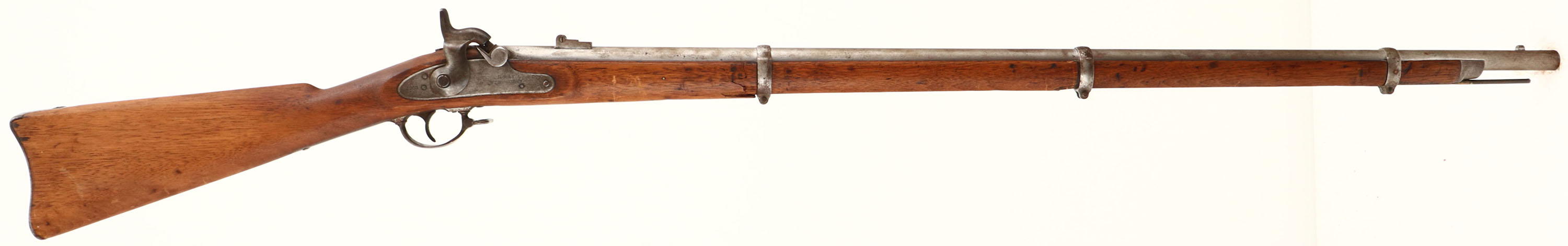 L.G. & Y. Model: 1861 Contract Musket. Cal: .58. MFG: 1863. S/N: N/A. Percussion Muzzleloader. 40' Barrel. The straight wrist wood stock is very good with crack on left & right side of stock behind rear barrel band, scratches, dents, chips & wear from use & age, Cartouche on left side of stock above trigger. Metal parts are gun metal gray with rust speckling, lock plate is marked ''1863'', ''L.G. & Y. WINDSOR-VT'', ''US'' eagle, Barrel is marked ''1863'', ''V'', ''P'' over eagle. Bore is good with light pitting. Barleycorn front sight, three position U-notch rear sight. Metal buttplate with rust speckling, hand marked ''XXV'' on upper tang & ''US'' on upper tang. Rear sling swivel, comes with ram rod. Muzzle loader No FFL Req. - Value: 200 to 400