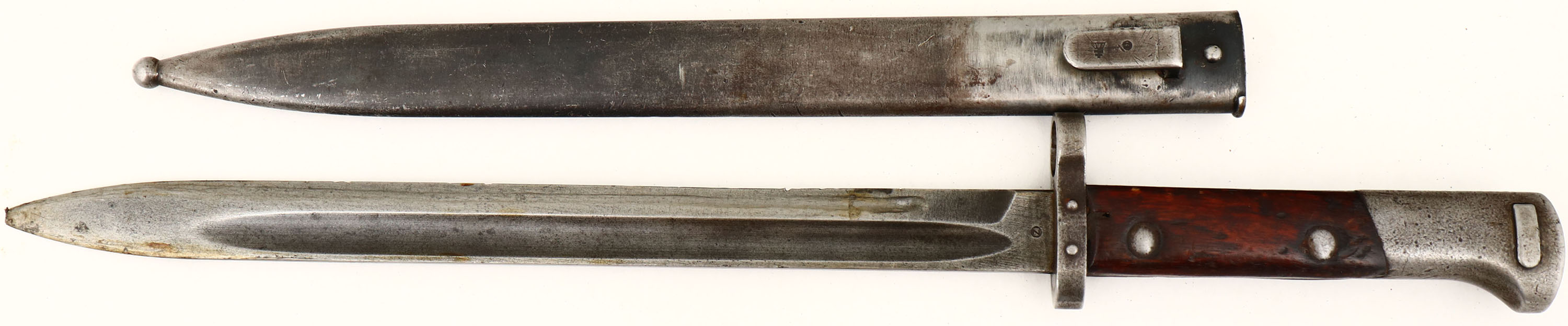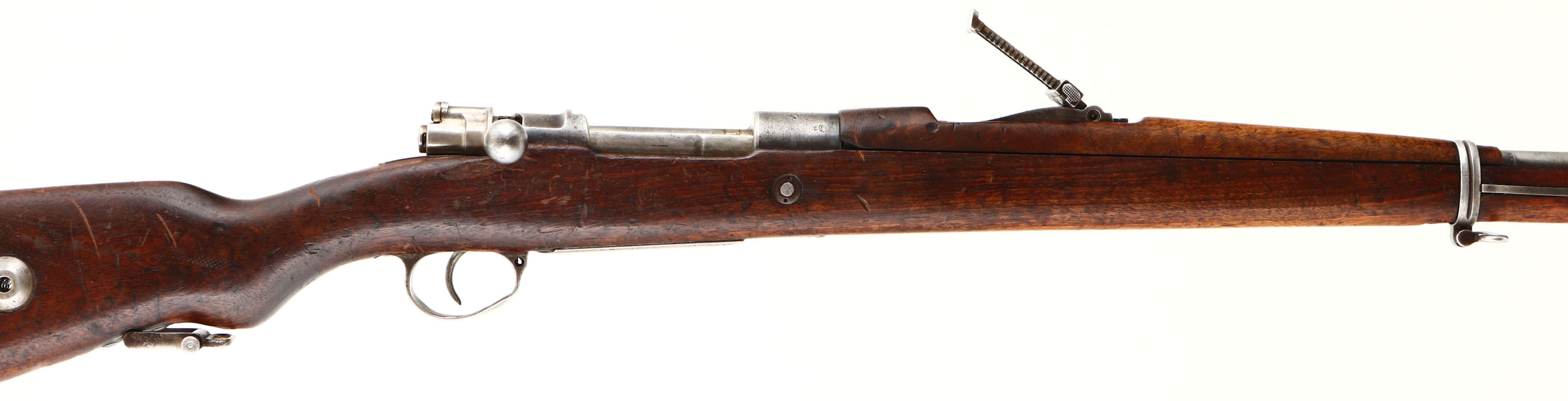 Zbrojovka Brno. Model VZ 98/22. Cal: 7.92x57mm, MFG: 1922-24. S/N: C3062. Bolt Action Rifle. 28 5/8'' Barrel. The Semi Pistol grip wooden stock is very good with scratches, chips, dents, gouges, vice marks & wear from use/age, Bolt disassembly disc in stock. The metal finish rates 30 % on receiver with spots worn to a gunmetal gray, The metal finish rates 10% on barrel with spots worn to a gun metal gray. Left side of receiver is marked with proof marks, ''23'' & S/N, top of receiver is marked ''CS.ST.'', ''ZBROJOVKA'', ''BRNO'', end of barrel is stamped with importer marks. Bore is very good, bright with some light roughness. Barleycorn front sight, V-notch tangent rear sight marked in Turkish. Metal buttplate that's worn mostly gray with spots of rust & is proud to wood is spots. Bottom sling swivels, has cleaning rod & comes with bayonet. A good 8mm Mauser shooter. FFL Or C&R Req. - Value: 200 to 400
