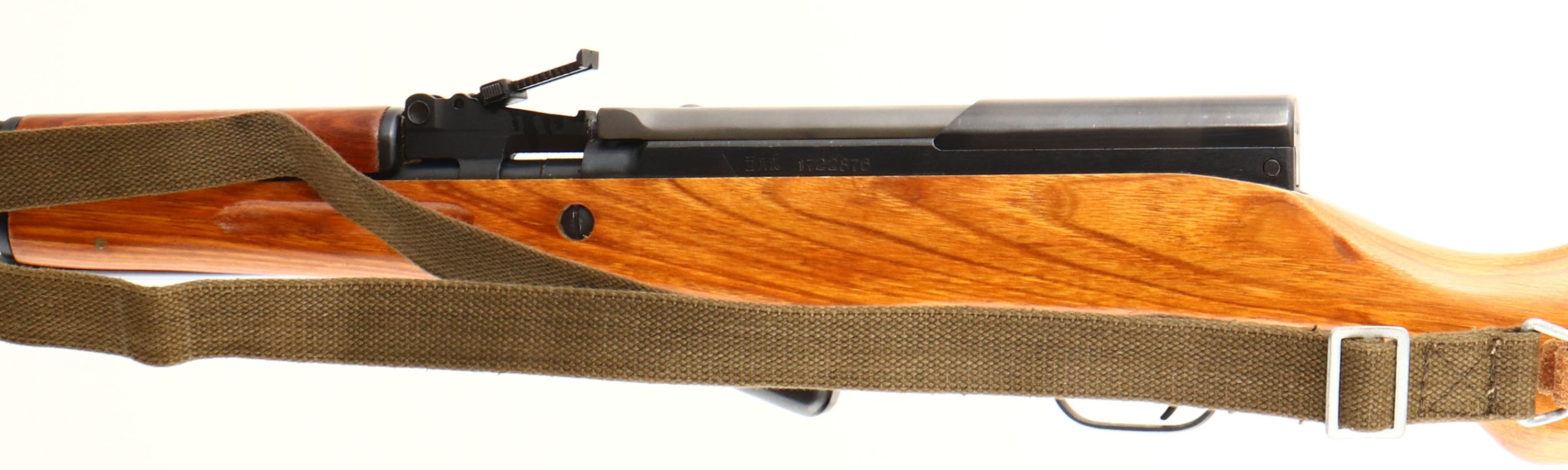 Chinese (Factory 216), Model: Type 56 SKS, Cal: 7.62x39mm, MFG: 1980's, S/N: 1722876, Semi-Auto Rifle, 20 1/2'' Barrel, The Original Semi Pistol Grip wood Stock is excellent, Left side of stock under sling mount is marked ''22876'', The metal finish rates 90% overall with light scratches, Left Side of receiver is marked with Factory 216 Symbol, Chinese lettering & S/N, Right side of receiver is marked With Importer marks. Bore is excellent. Hooded Front post, U-notch Tangent rear sight marked 1 to 10, Metal trapdoor buttplate, Factory sling mounts, comes with green sling, folding bayonet, cleaning rod & cleaning kit in buttstock, A Very nice Example of a SKS that would make a nice addition to a collection. FFL Req. - Value: 300 to 600