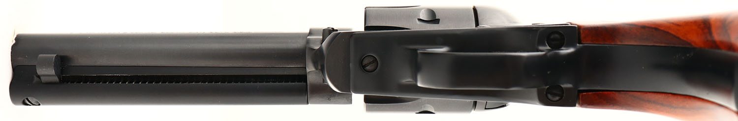 CASED, Ruger New Model Single Six, CAL: 22LR/22 MAG, MFG: 2002, SN: 268-26610, Single Action Revolver, 4 1/2'' barrel. The original wood medallion grips are near mint, The metal blue finish rates 98% overall, with one small mark to right side of receiver. Bore is excellent. Comes in original red box, with paperwork & extra cylinder. FFL Req - Value: 400 to 800