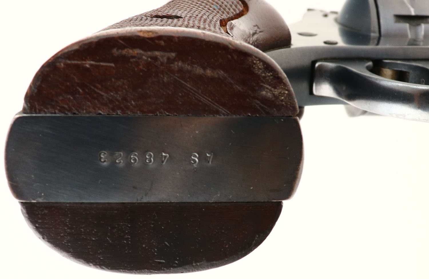 Harrington & Richardson, Model 939, CAL: 22LR, MFG: 1978, SN: AS48923, Double Action Revolver, 6'' barrel. The original checkered wood grips are excellent, with thinning & flaking finish wear due to use & minor handling marks. The original metal blue finish is retained at 97%. The trigger & trigger guard are blued. Silver toned hammer. Bore is excellent. Vented rib, Factory sights. Action & cylinder timing function properly. FFL Req. - Value: 300 to 600