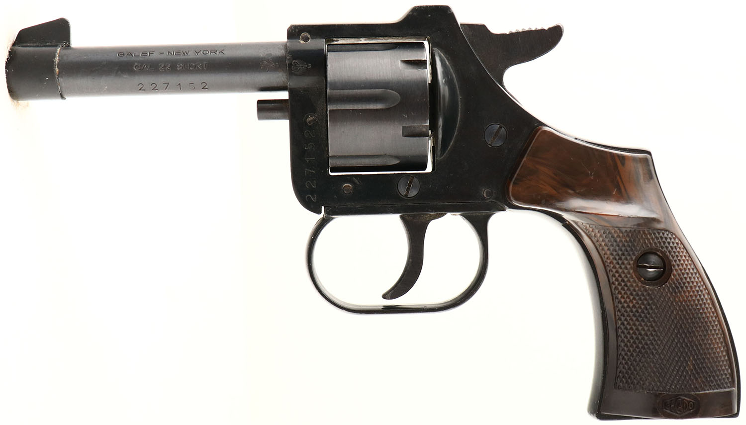 Gecado, .22 Short Cal, MFG 1950-60's, SN: 227152, Double Auction Revolver Pistol, 2 7/8'' barrel, The checkered brown plastic grips are excellent, The original blue finish is 90%, Bore is excellent. FFL Req. - Value: 50 to 100