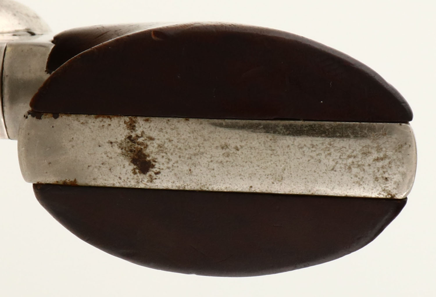 Remington, Model 1861 Army, .44 caliber, MFG: N/A, SN: 11483, The Remington navy is a single-action, six-shot, Large-frame percussion revolver produced by Remington's, Ilion, N.Y. plant. 8''Octagon barrel. The wood grips are very good, with minimal shrinkage & minor handling marks. The pistol has been re-nickeled, with the nickel showing haze from age & use. Some rust speckling, edge wear & flaking. Bore is good, but with areas of pitting amongst strong rifling. Appears to function properly. Condition is well used, but not abused. Black Powder, No FFL Req. - Value: 500 to 1000