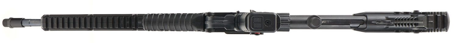 BOXED, Kel-Tec, Model ''Sub 2000'', CAL: 9mm, MFG: Modern, SN: FGD676, Semi Auto Rifle, 16 1/4'' barrel. The folding plastic stock, with textured grip & forend are excellent. The matte black finish rates 99% overall. Bore is excellent. The receiver holds a small peep sight & the barrel holds an elevated front sight. The forend has full picatinny rails for accessories & optics. NIB. New old stock. Comes in original box, with owners manual & mag. A great gun for backpacking. The SUB-2000 design is a rather unusual folding design that breaks down for storage into half its total extended length & does not fire when folded. FFL Req. - Value: 400 to 800
