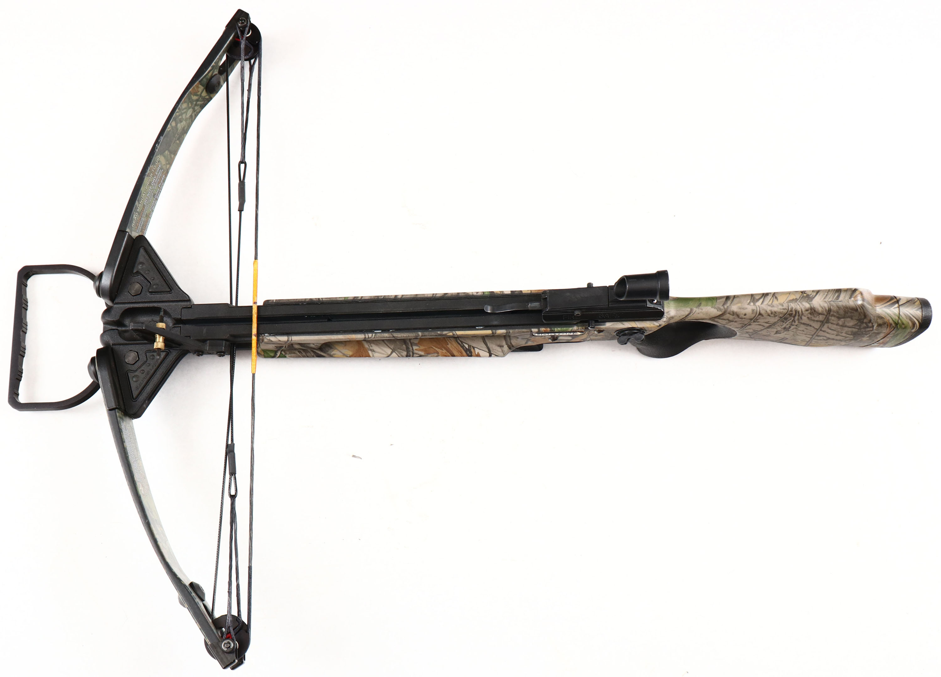 Horton, Model: Legend XL175, Cross Bow, Synthetic camo stock, side post front sight, Elevation adjustable aperture rear sight. Grade: Excellent + - Value: 50 to 300