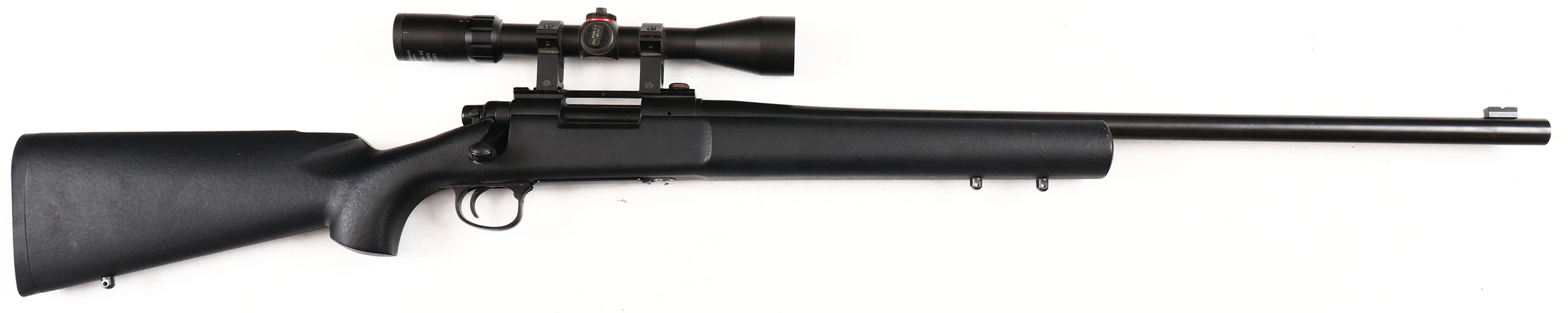 Kjworks, Model: M700 . Bolt action BB Gun. Co2. Black plastic stock, metal finish rates 99%. Comes with Simmons 3-9x40 Blazer scope, appears to function properly. Grade: Excellent - Value: 50 to 200