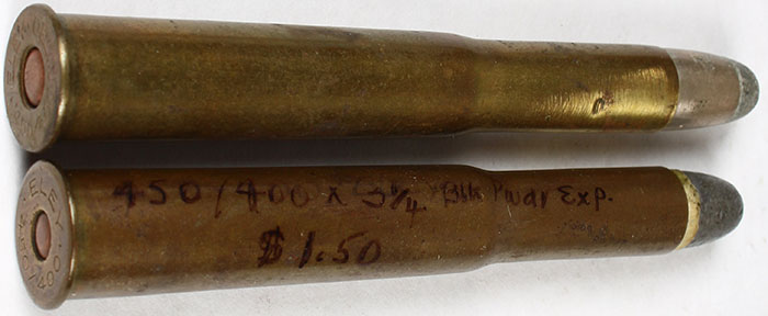 Lot of 2 H/S= ''ELEY 450/400 NITRO'', 3 1/4'' C.L., oval COP. PRL., S.P. TIN R.N. H/S= ''ELEY 450/400'', 3 1/4''. C.L. SM. Oval COP. PRL., B.P. EXPR. P.P. R.N.L. COP. Tube. Grade: Very Good + - Value: 20 to 40