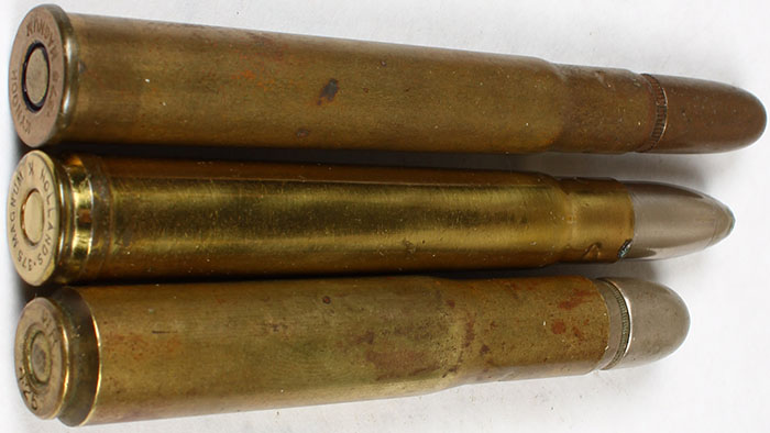 Lot of 3 H/S= ''WR 425'' Westley Richards MAG. 2 5/8'' rimless, oval BR. PRL., F.P. TIN R.N. 1-KN H/S= ''KYNOCH 375 Magnum'', 2 15/16'' C.L. rimmed, FLT. BR. PRL., F.P. G.M. R.N.-X H/S= ''Holland's 375 Magnum'' rimless, FLT. BR. PRL., S.P. TIN R.N. Grade: Very Good - Value: 20 to 40