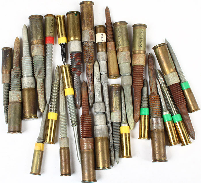 Lot of 26 tool powder loads & stud, mix of calibers. Grade: Very Good + - Value: 20 to 40