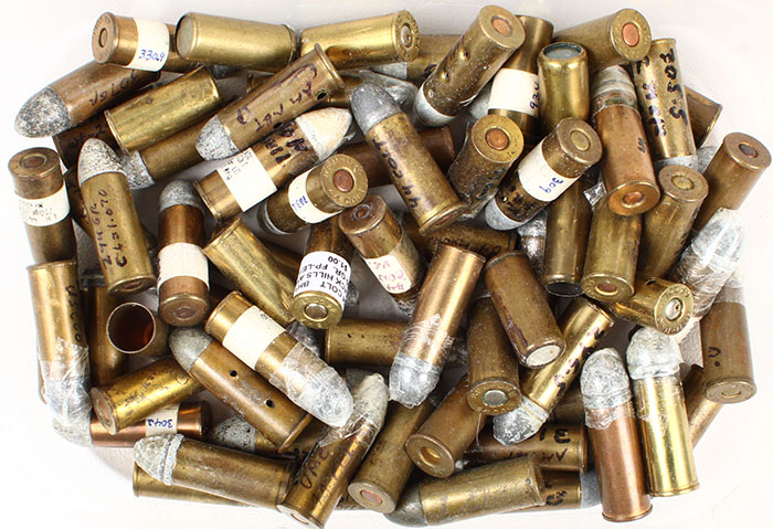 44 COLT, collection of 73 early MFG. of mixed H/S, PRL. & B'T. variations all diff. includes, B.D'S. sales dummies, shot & blank loads, short & mid-range loads ECT. Grade: Very Good ++ - Value: 60 to 100