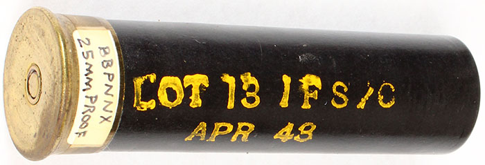 | H/S: none, 25MM Proof, loaded shotshell, black paper case 3 13/1...
