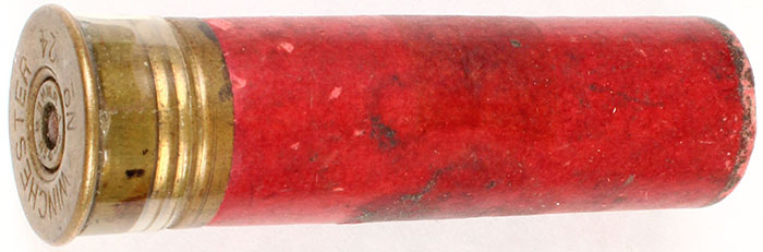 H/S: Winchester No 24, loaded shotshell, red paper case, 2 5/16'' OAL. Grade: Very Good - Value: 6 to 30