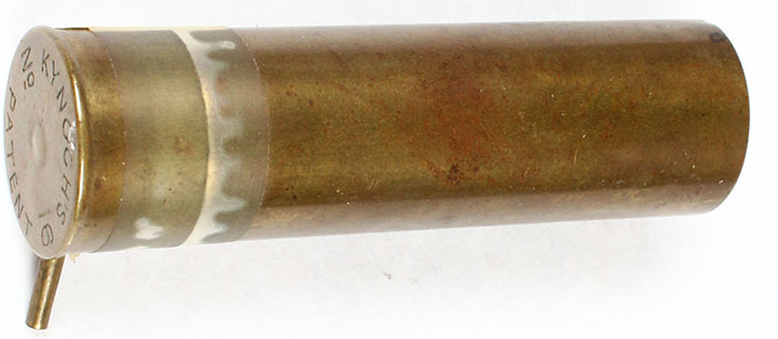 H/S: KYNOCH No 16 Patent, brass pinfire shotshell, empty, 2 9/16'' OAL. Grade: Excellent - Value: 6 to 30