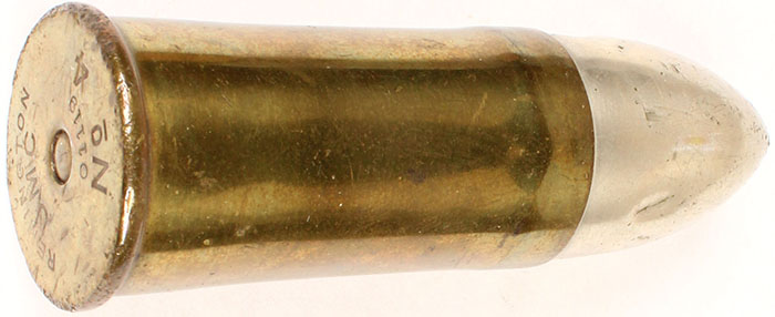 H/S: Remington UMC No 4, 3 1/2'' OAL, loaded, few dents to bullet. Grade: Very Good + - Value: 10 to 50