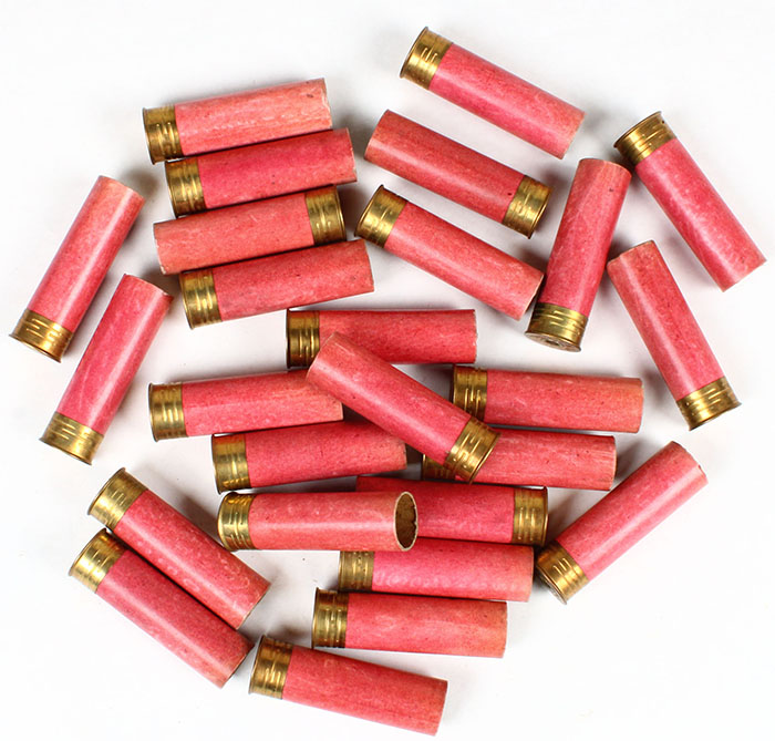 | Lot of empty red paper shotshells. Grade: Excellent - Value: ...