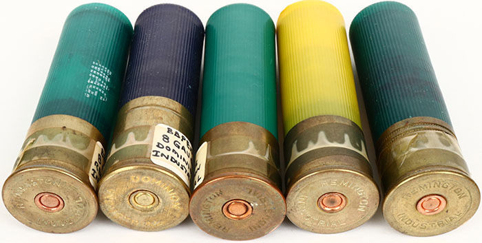 Lot of 5 loaded plastic shotshells. Grade: Excellent - Value: 10 to 50